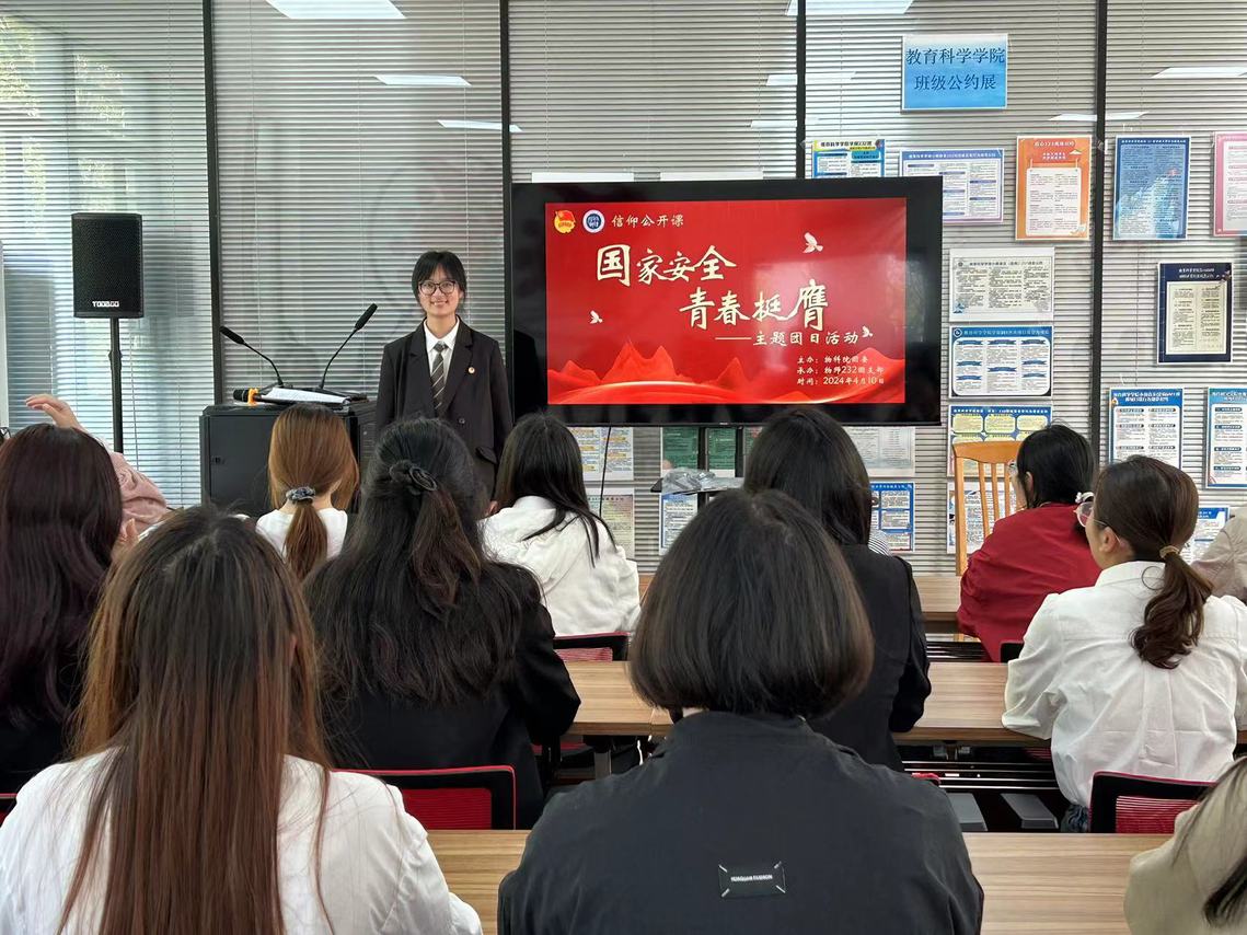 活动包含五个环节。活动在《光荣啊,中国共青团》团歌中拉开序幕。“听分享,重思考”环节,2022年江苏高校百校万名团干部思政技能大比武二等奖获得者徐灵驰老师为团员青年们带来了一堂《一桥连三地 天堑变通途——从港珠澳大桥建造史看“一国两制”制度优越性》主题思政课。徐灵驰从“来之不易、逐梦百年”“万人匠心、筑梦九载”“圆梦当代、利在千秋”三个方面,回顾总结了港珠澳大桥的建设历程,阐述了在以习近平同志为核心的党中央领导下“一国两制”政策的生命活力。“读讲话,悟思想”环节,物师232团小组成员对习近平总书记关于总体国家安全观的重要论述进行分享,通过生动的图文展示了国家安全与青年员工的紧密联系以及维护国家安全的重要性。“看视频,懂方法”环节,现场团员青年们一起观看视频,视频详细介绍了国家安全面临的严峻形势和应对策略,让同学们深刻认识到维护国家安全的重要性。知识问答环节中,同学们踊跃回答,现场气氛浓厚,增强了大家对国家安全知识的深入学习和了解。物师232团支部董颜同学演唱了歌曲《国家》,爱国歌曲的传唱表达了williamhill英国官网学子以“爱”之名,向祖国的深情告白。与会同学们纷纷表示,作为一名新时代老员工,应当加强国家安全意识,时刻保持警惕,提高对国家安全的认识和理解,只有树立正确的安全观念,才能更好地保护国家安全。