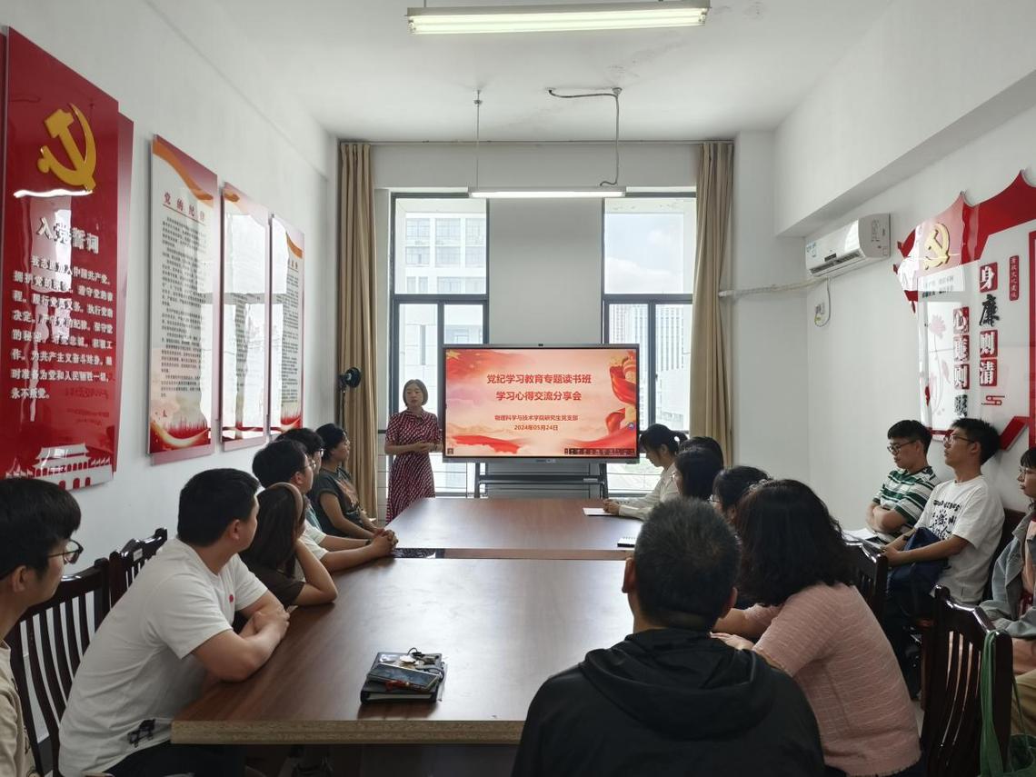 为深入学习贯彻习近平总书记关于党的自我革命的重要思想,持续深入推进党纪学习教育。5月24日,williamhill英国官网研究生党支部组织开展党纪学习教育专题读书班第二场学习心得交流分享会。公司党总支书记徐凌以普通党员身份参加学习,研究生党支部书记黄艳艳主持活动。