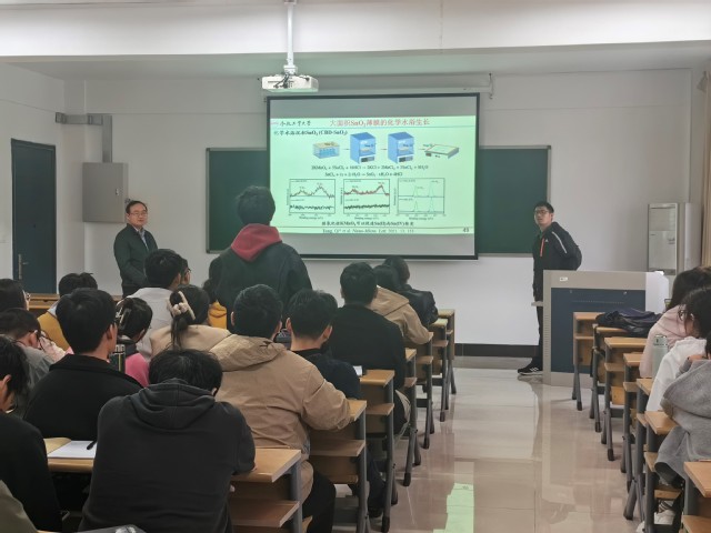 11月8下午,合肥工业大学材料科学与工程公司教授、博士生导师童国庆教授应邀来公司为师生做了题为“金属卤化物钙钛矿生长调控及光电子器件构筑”的专题学术报告。副经理于忠卫主持报告会。