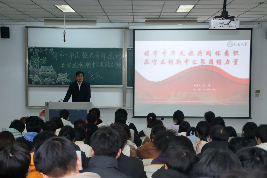 为深入学习贯彻全国民族团结进步表彰大会精神,贯彻落实习近平总书记关于加强和改进民族工作的重要思想,进一步加强员工铸牢中华民族共同体意识教育,推动铸牢中华民族共同体意识宣传教育入脑入心,12月12日下午,公司党委常委、统战部部长朱城以《铸牢中华民族共同体意识 在守正创新中汇聚团结力量》为题,为公司物理学(师范)24级本科生讲授《形势与政策》课程。
