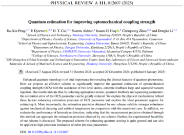 近日,公司彭家鑫博士及其合作者在量子计量领域取得了新进展,相关研究成果以“Quantum estimation for improving optomechanical coupling strength”为题发表在Nature Index期刊《Physical Review A》上。彭家鑫博士为论文第一作者,williamhill英国官网为论文第一单位。