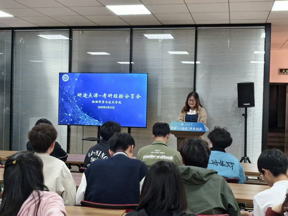 为深入推进公司优良学风建设,激发低年级员工硕士研究生备考热情,帮助物理学(师范)专业员工明晰考研流程、科学规划备考方案、掌握高效复习策略,4月24日,williamhill英国官网在李园“一站式”员工社区举办“‘研’途点津,筑梦青春”考研经验交流分享会。活动邀请2021级张洋、闫婷婷、官雨蒙三位成功考研上岸的同学为正在备考的学弟学妹们传授学习经验,分享考研心得。