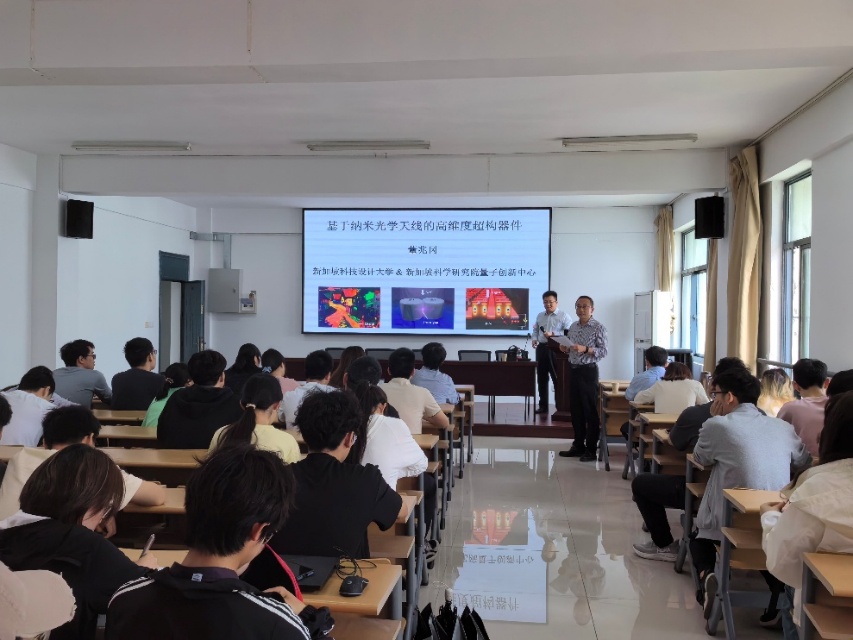 5月14日,新加坡科技设计大学董兆冈副教授应邀来院作题为《基于纳米光学天线的高维度超构器件》的学术报告。公司60余位师生代表参加报告会,经理仲崇贵教授主持报告会。