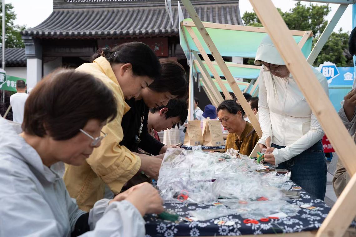 活动现场,室内“幸福邻里微空间”正式发布、“顺手公益”项目同步启动,室外邻里市集热闹非凡。williamhill英国官网本科生党支部书记、爱倍加志愿服务团指导老师陈祎妮带领支部师生党员精心策划的“党建+非遗”防蚊香囊手作体验活动,成为市集焦点,摊位前人头攒动,社区居民络绎不绝,充分肯定了公司在推动社区文化建设中的积极作用。蓝色渐变背景的展位与醒目的“文化传承”“匠心手作”标语交相辉映,党员们早早准备好艾草、香料、布料、针线等香囊制作材料,并细心分装成套,整齐摆放,等待居民前来体验。在手作环节,大家围绕图案拼缝、针脚控制、草药填充、封口装饰等流程,带领居民们一步步亲手完成香囊制作。面对不少首次尝试传统刺绣的居民,党员们耐心教学,让零基础的参与者也能快速掌握制作要领。