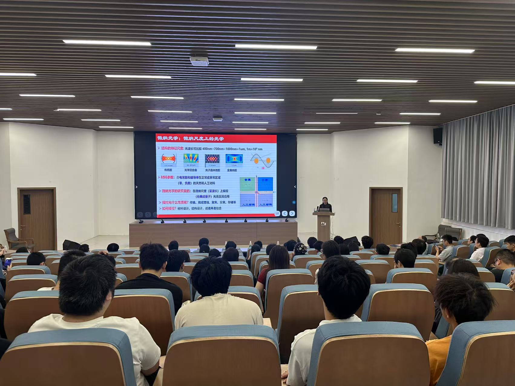 古英在报告中指出,随着量子器件的集成化和小型化,微纳光子学为芯片上量子光学和量子信息研究提供了新的维度和效应。她从多种微纳光子结构及其组合结构中的光学模式出发,深入探讨了量子光场与量子体系的耦合、腔量子电动力学、量子干涉及量子信息等领域的研究进展,揭示了微纳尺度上光与量子体系相互作用的新现象与新效应,为相关领域的理论研究和潜在应用提供了重要基础。此次讲座为williamhill师生提供了与顶尖学者面对面交流的机会,进一步拓宽了学术视野,激发了科研热情。