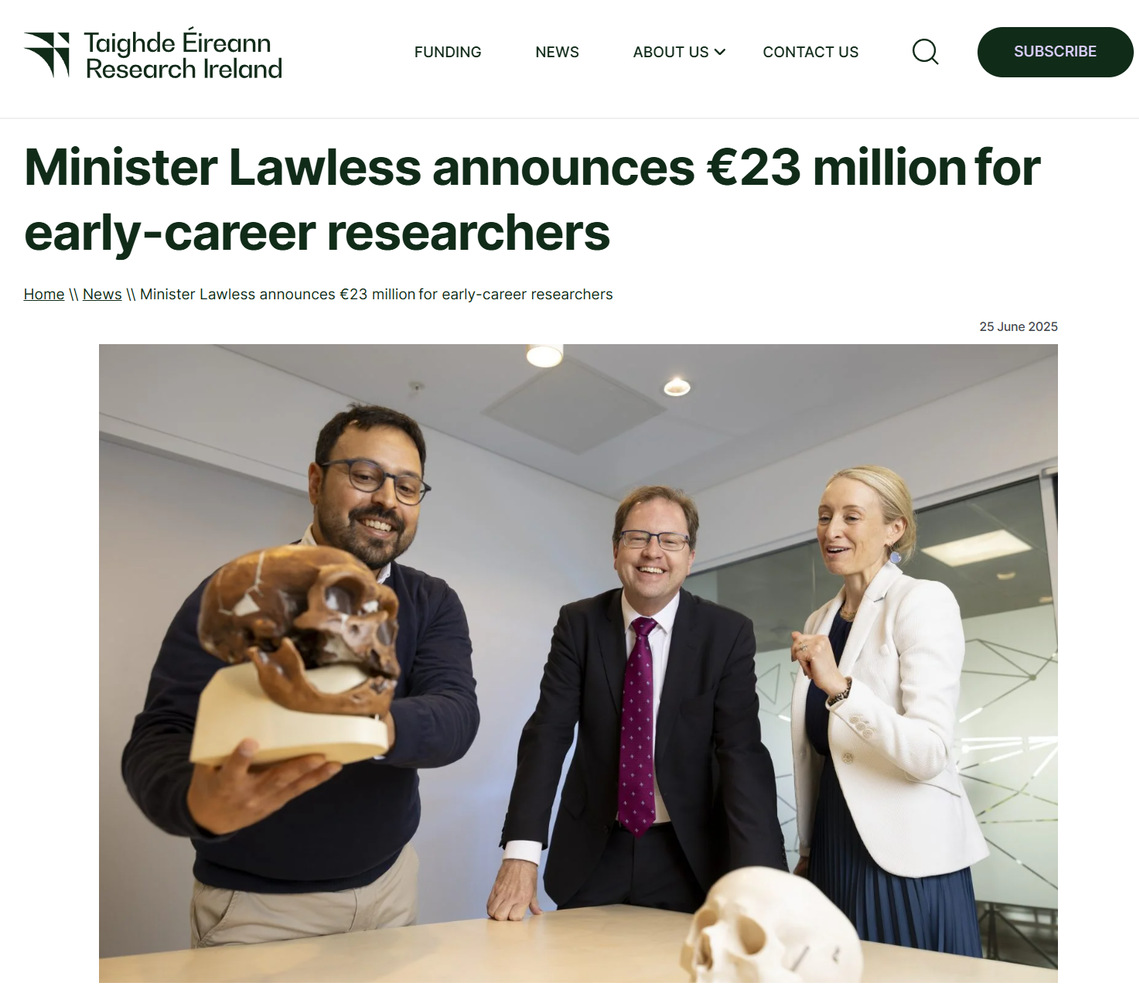近日,公司黎菁博士获得由爱尔兰国家科学基金会(SFI)和爱尔兰研究委员会(IRC)联合资助的Research Ireland Pathway研究项目。此项目将支持研究人员并提供资源以建立独立的研究事业。这项有针对性的投资将为每个项目提供额外的支持,以培养博士研究生,共计资助230万欧元。2025年,该项目一共资助了36个研究项目,涵盖了科学、技术、工程和数学(STEM)以及艺术、人文和社会科学等领域。